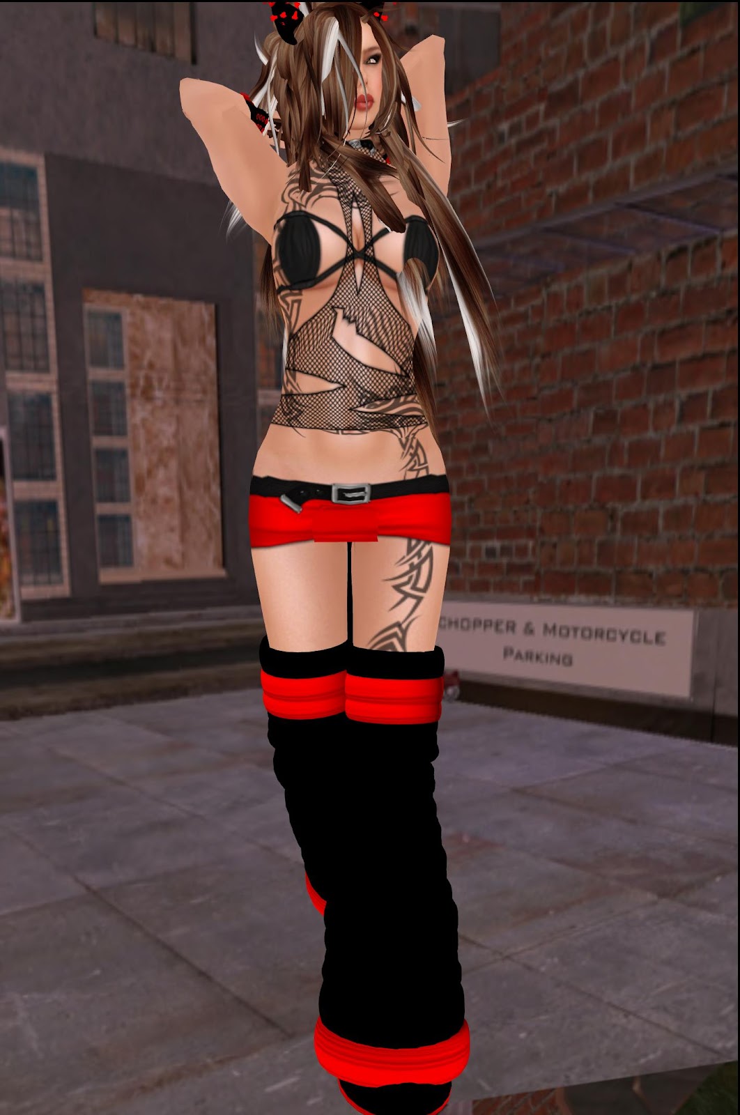 :. Envious.: had Paranoid Kitty in their midnight mania board. Mini skirt, shredded fishnet shirt with bra and neko boomer boots plus claws, ears and tail all come with this outfit. RAWR!!!!